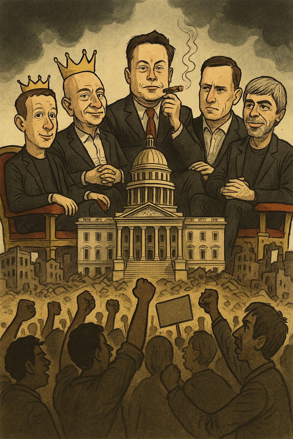 Every thinking person eventually hits the wall. You connect the dots between Elon Musk dictating foreign policy from orbit, Peter Thiel funding political dark ops, Jeff Bezos hosting the CIA's cloud infrastructure, and Zuckerberg rewiring cognition for profit, and the question comes: